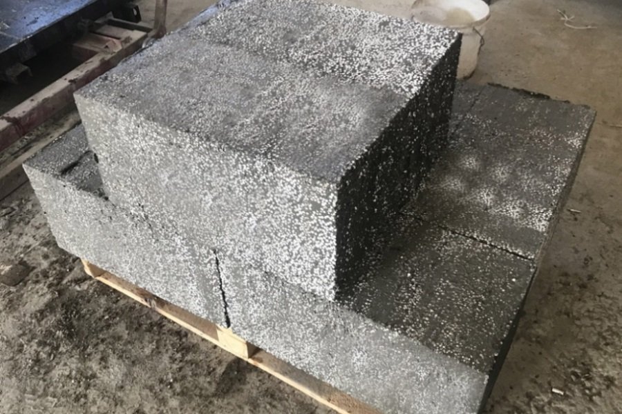 Свои основные преимущества полистиролбетон приобретает вследствие использования при его производстве вспененного полистирола. Эти легкие гранулы небольшого диаметра делают материал не только прочным, но и относительно легким. К примеру, блоки из полистиролбетона Д500 имеют существенно меньший вес, чем кирпич, газоблок или шлакоблок. Кроме полистирола в состав входит цемент, песок и вода. Также, чтобы улучшить характеристики материала и ускорить затвердение, добавляются специальные пластификаторы.