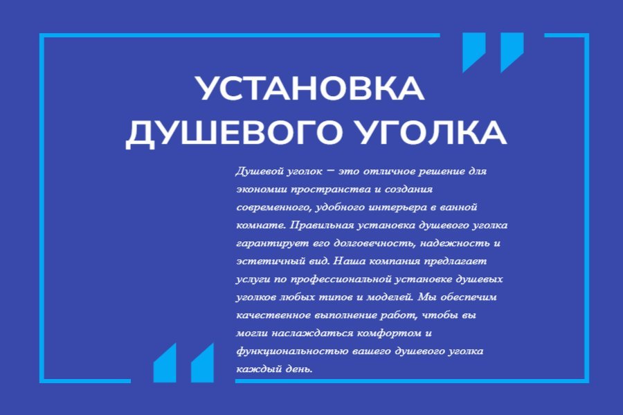 - Качество и надежность. Мы используем только проверенные материалы и профессиональные инструменты, что гарантирует долговечность и устойчивость установленного душевого уголка. Все работы выполняются в строгом соответствии с техническими стандартами и нормами безопасности, что исключает риск протечек и других проблем.