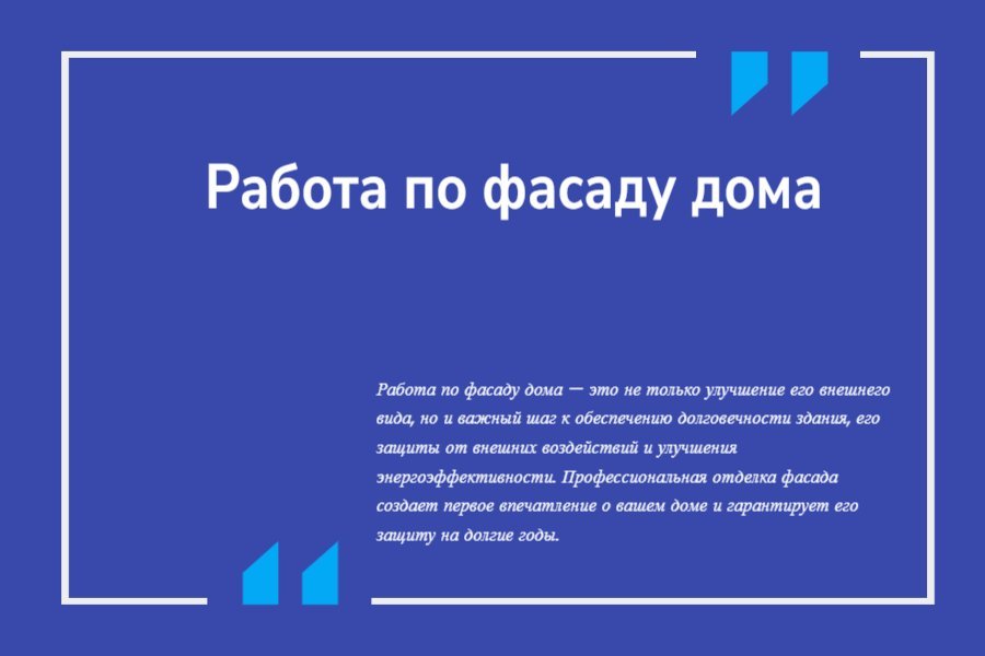 - Профессионализм и опыт: Мы обладаем многолетним опытом работы с различными видами фасадных отделок и гарантируем высокое качество выполнения всех этапов работ.